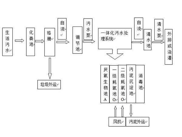 三、一体化生活污水处理设备主要特点: 2、全自动控制,不需人员管理 3、无污泥回流 4、操作简单、维护方便 5、噪声低,无异味 6、使用寿命长。